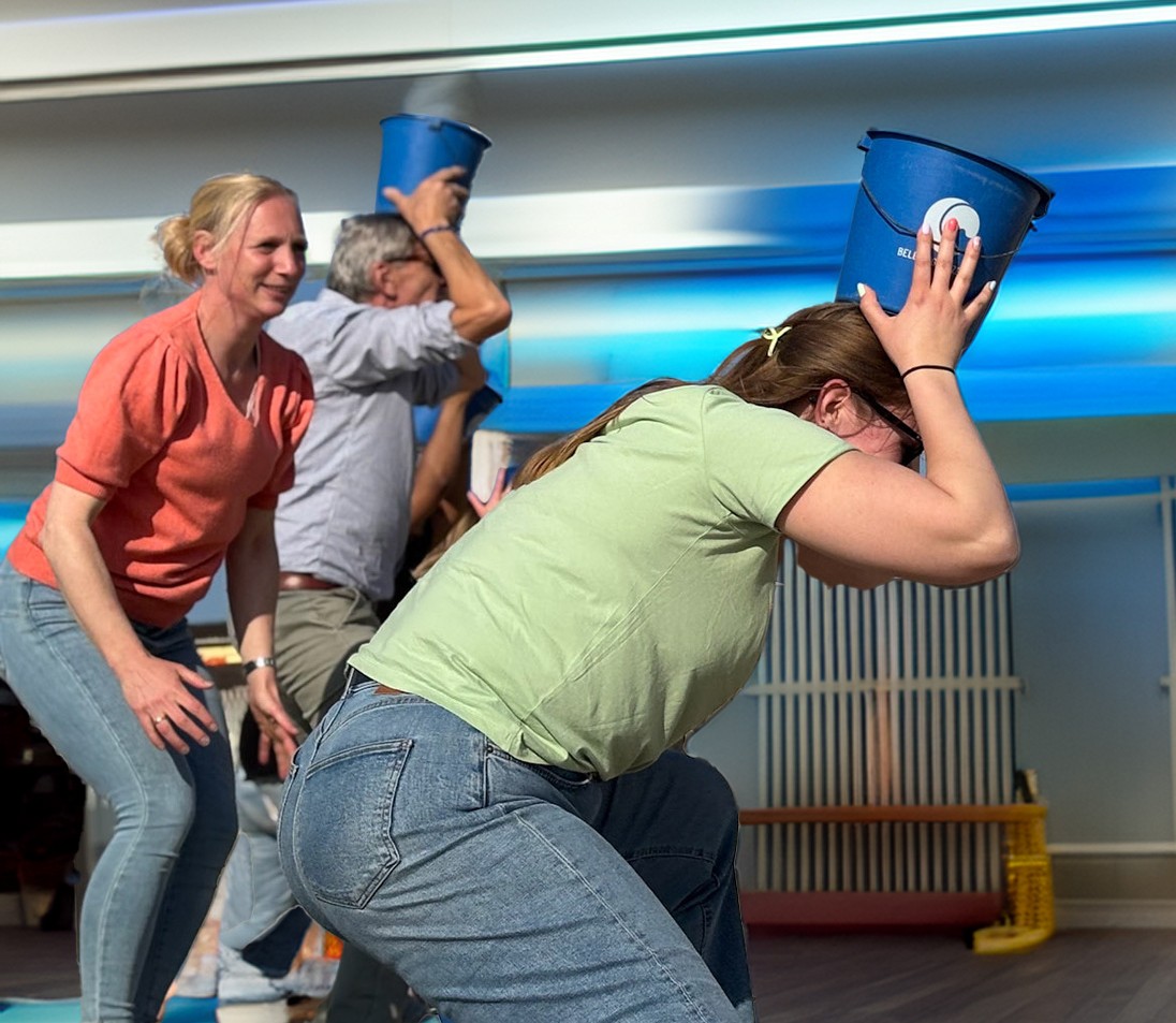- Niet emmeren maar vangen – Werk samen om ballen met een emmer te vangen.